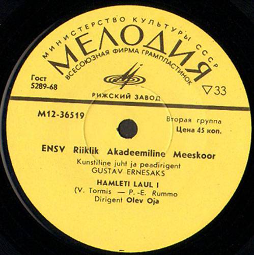 Мелодия's credit of Plaadifirma on Государственный академический мужской хор Эстонской ССР (1966) (33Д-00017845-6)